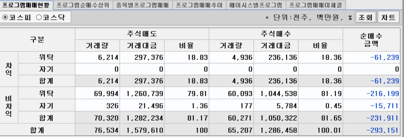 수급 - 외국인 개인 매수모드임. 기관, 투신 기타등등 모두 매도함.