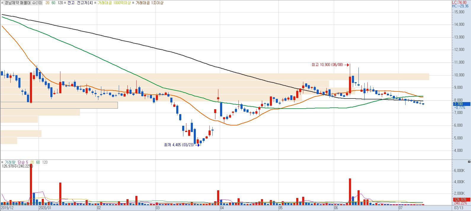 - 2020년 3월 전년동기 대비 연결기준 매출액은 74.4% 증가, 영업이익 흑자전환, 당기순이익은 2420.5% 증가. 주력제품인 레모나의 BTS 광고 모델 기용과 광동제약 인력 영입의 효과로 인해 큰폭의 매출 성장 시현함. 하반기 이후에는 고함량 비타민류의 중국 식약처 의승인으로 중국 시장에서의 성장이 기대되고 있으며 3분기 이후 점진적인 유통망 확대를 계획하고 있음.