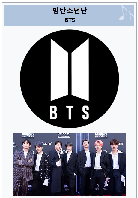 위키백과, 우리 모두의 백과사전. 방탄소년단(한국 한자: 防彈少年團, 영어: BTS)은 2013년 6월 13일에 데뷔한 빅히트 엔터테인먼트 소속 대한민국의 7인조 보이 그룹이다.[1][2] '방탄소년단' 이라는