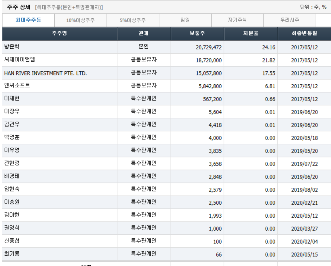 빅히트 2대주주? 여기 친척이 있슴 방준혁씨라고...