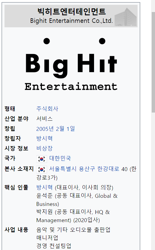 빅히트 엔터테인먼트 - 위키백과, 우리 모두의 백과사전