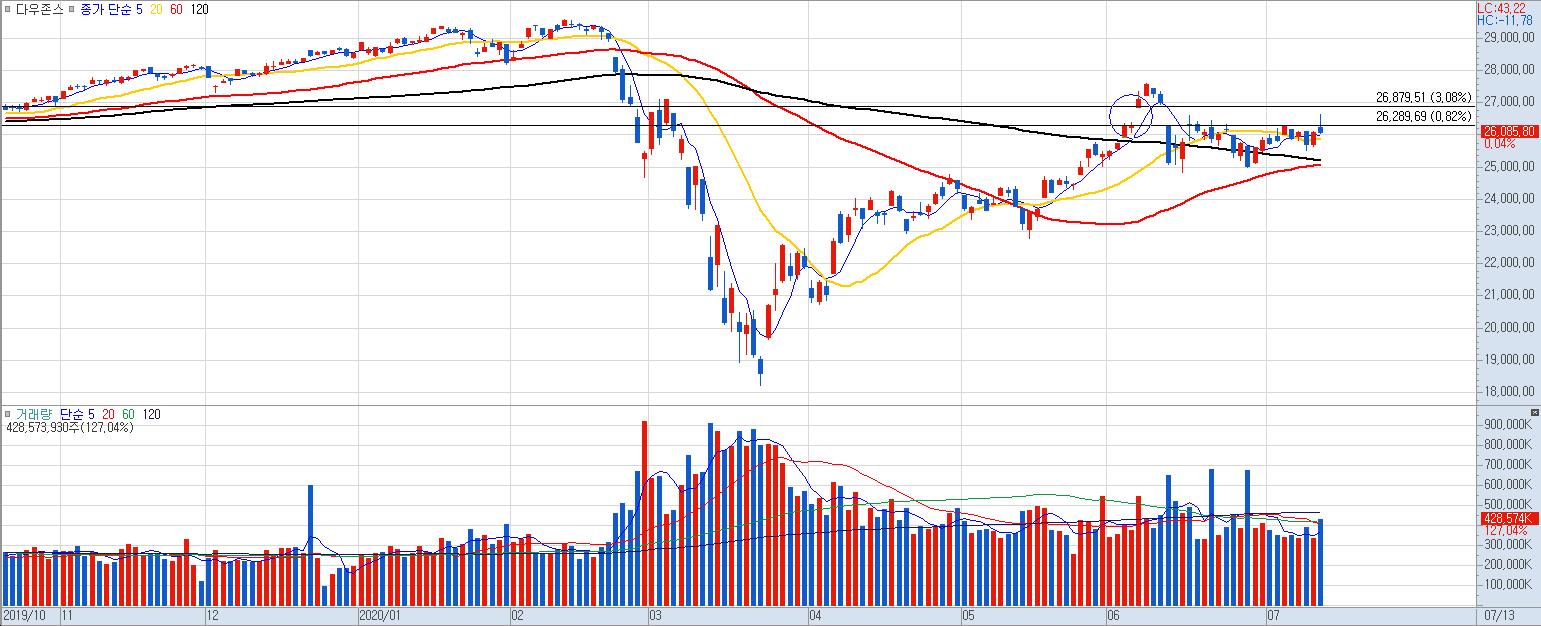 다우 - 하락나옴. 시작인지 좀더 봐야 함.