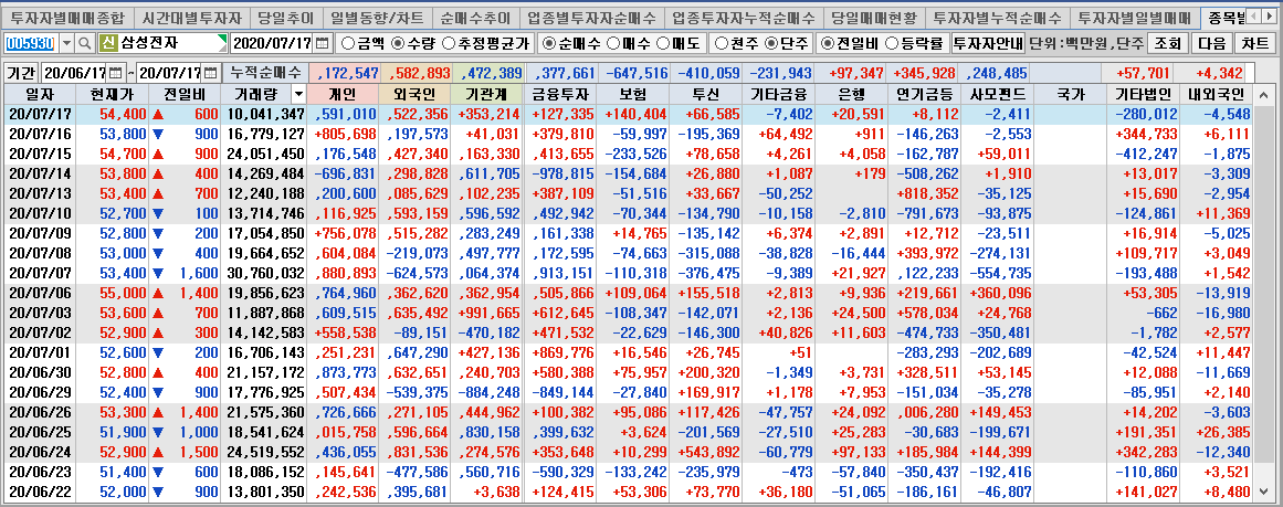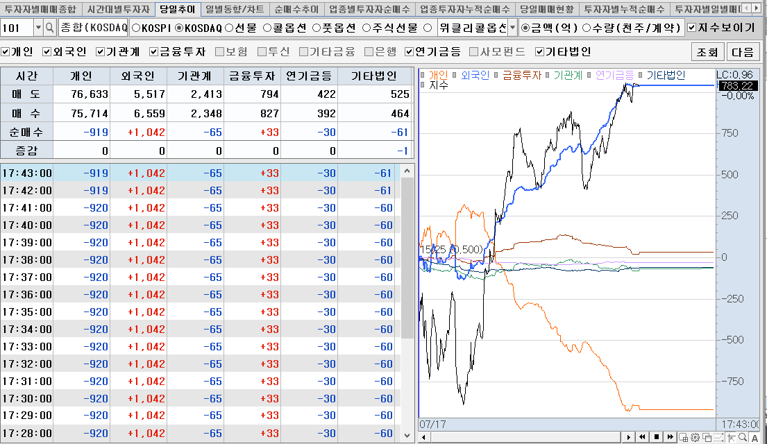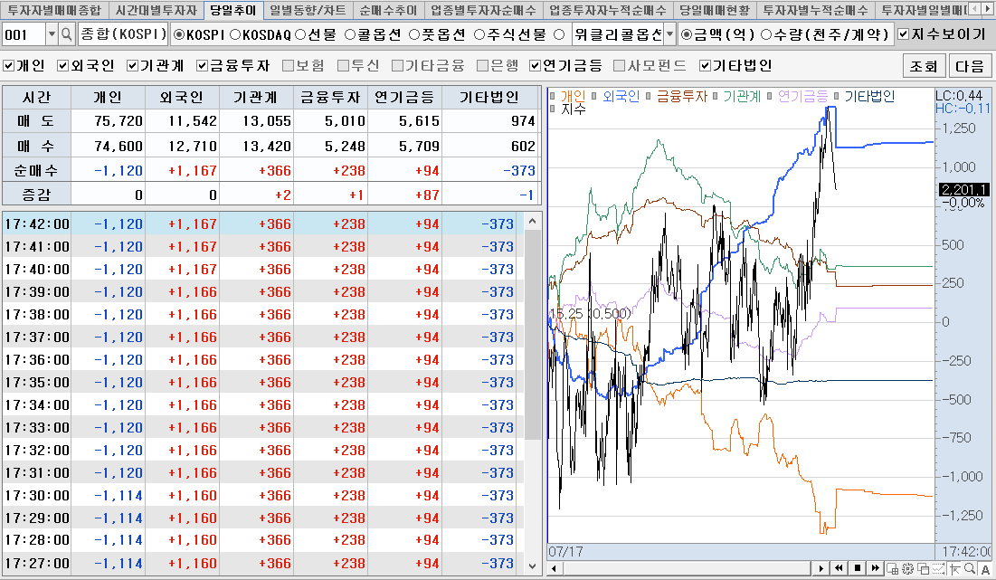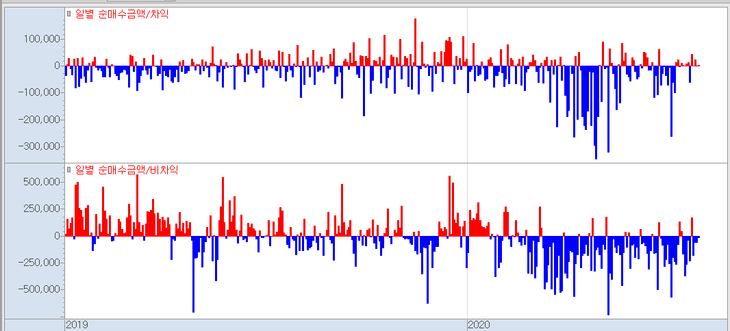 개인은 늘 외국인과 반대로 감. 그럴수 밖에 없슴.