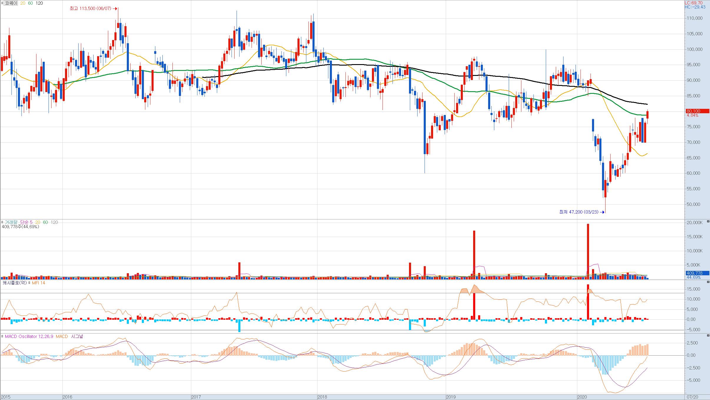 - 2020년 3월 전년동기 대비 연결기준 매출액은 187.7% 증가, 영업이익은 143% 증가, 당기순이익은 60.4% 증가. 화학부문의 부진에도 불구하고, 에너지 및 요식업 부문의 선전으로 매출액 및 수익성 향상된 모습을 나타냄. 매출에서 큰 부분을 차지하고 있는 전자결제 부문에서의 신규 사업 진행과 제휴 활동의 성공여부가 향후 추가적인 실적 개선의 포인트로 판단됨.