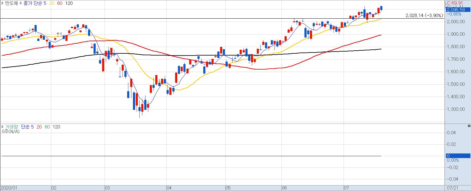 반도체 - 나스닥과 함께 하는듯. 갭떠서무너지는 음봉.