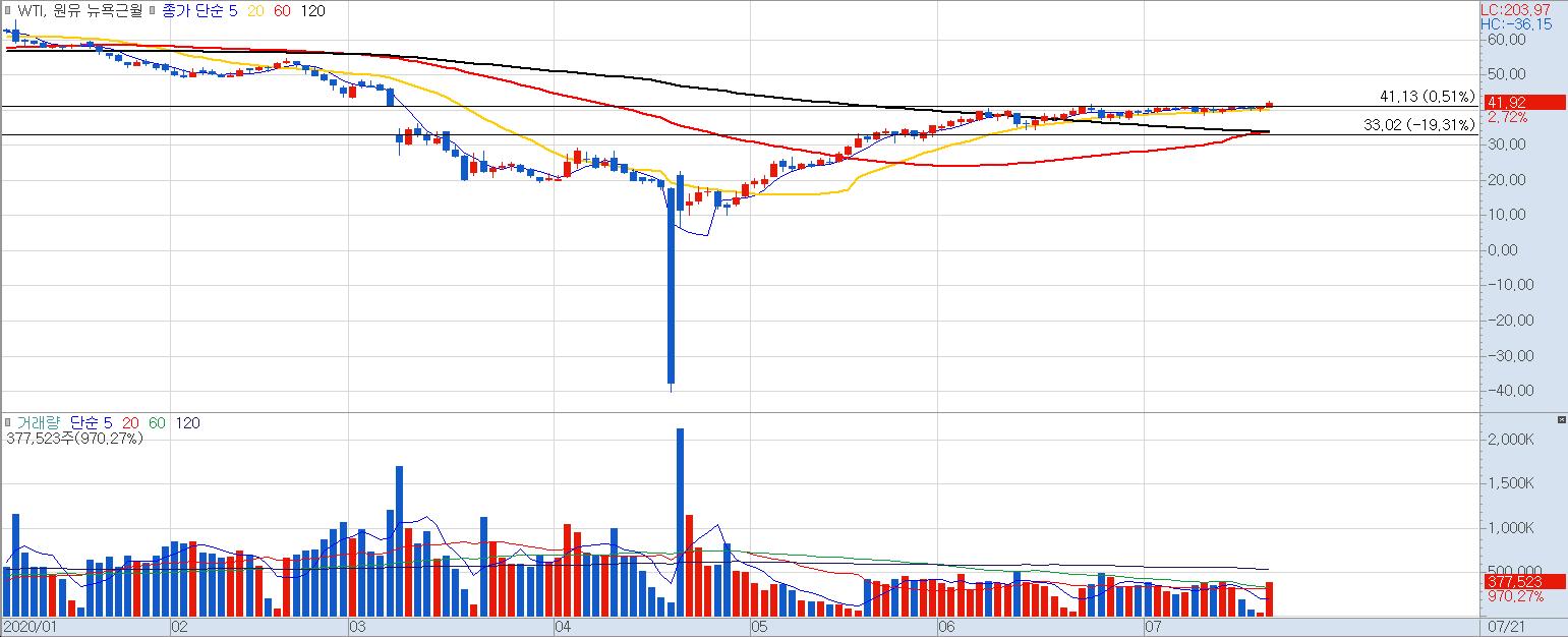 유가 - 갭 뚫고 올라옴. 본격적으로 유가 상승하나?