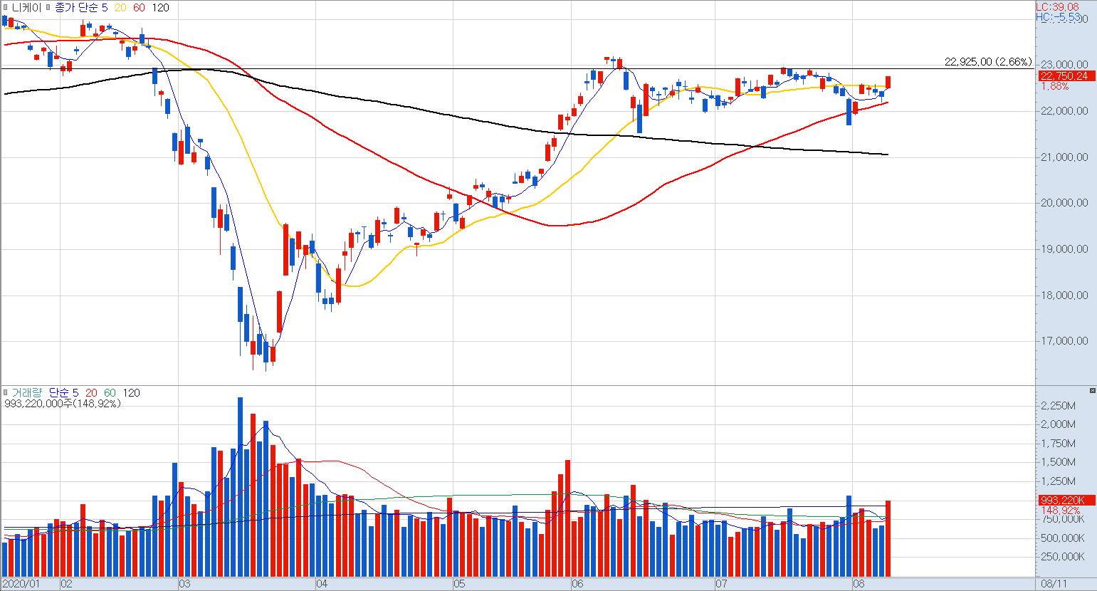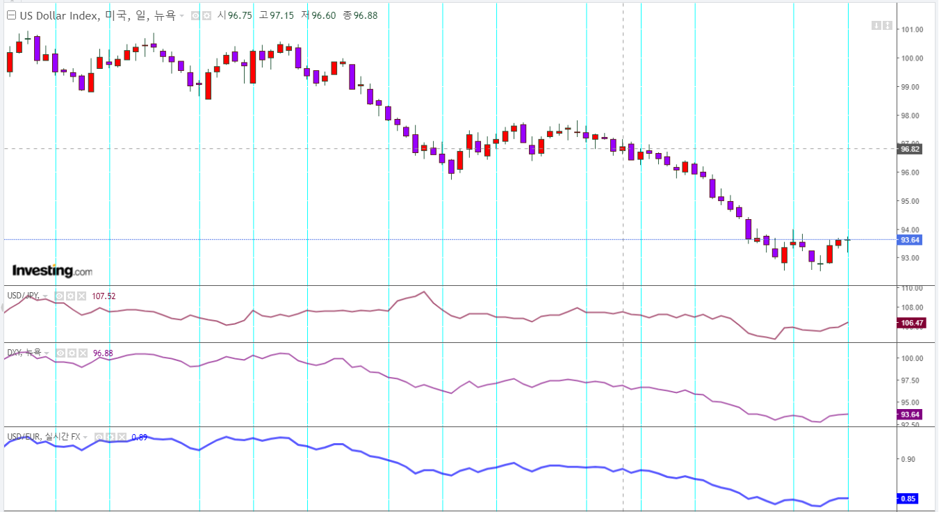 니케이 - 단번에 20위로 올라옴. 달러인덱스 하락에 따른 엔화 통화량이 조정되고 있는것이 아닌가 생각이 듬.