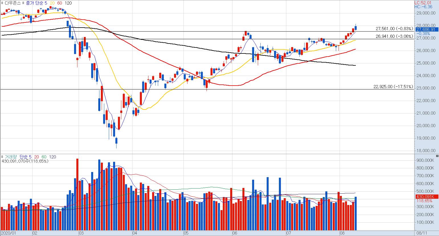 다우 - 상승 후 조정으로 판단. 쉬었다 가야 더 갈수 있다 생각.
