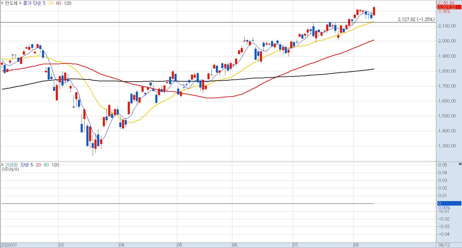 반도체 - 나스닥 연동. 동일하게 한박자 쉬고 다시 상승.
