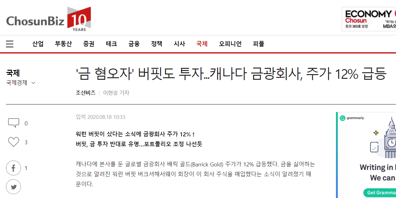 금을 산것이 아니라.. 금광회사에 투자...