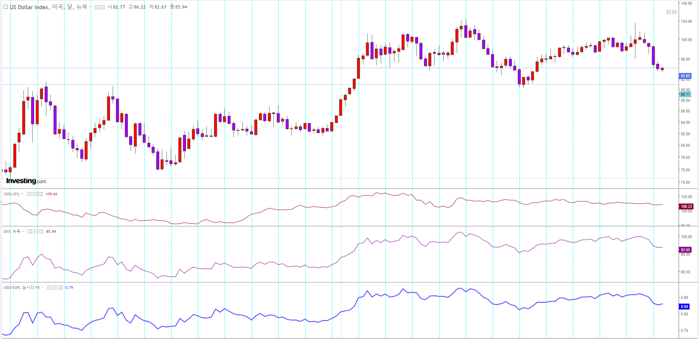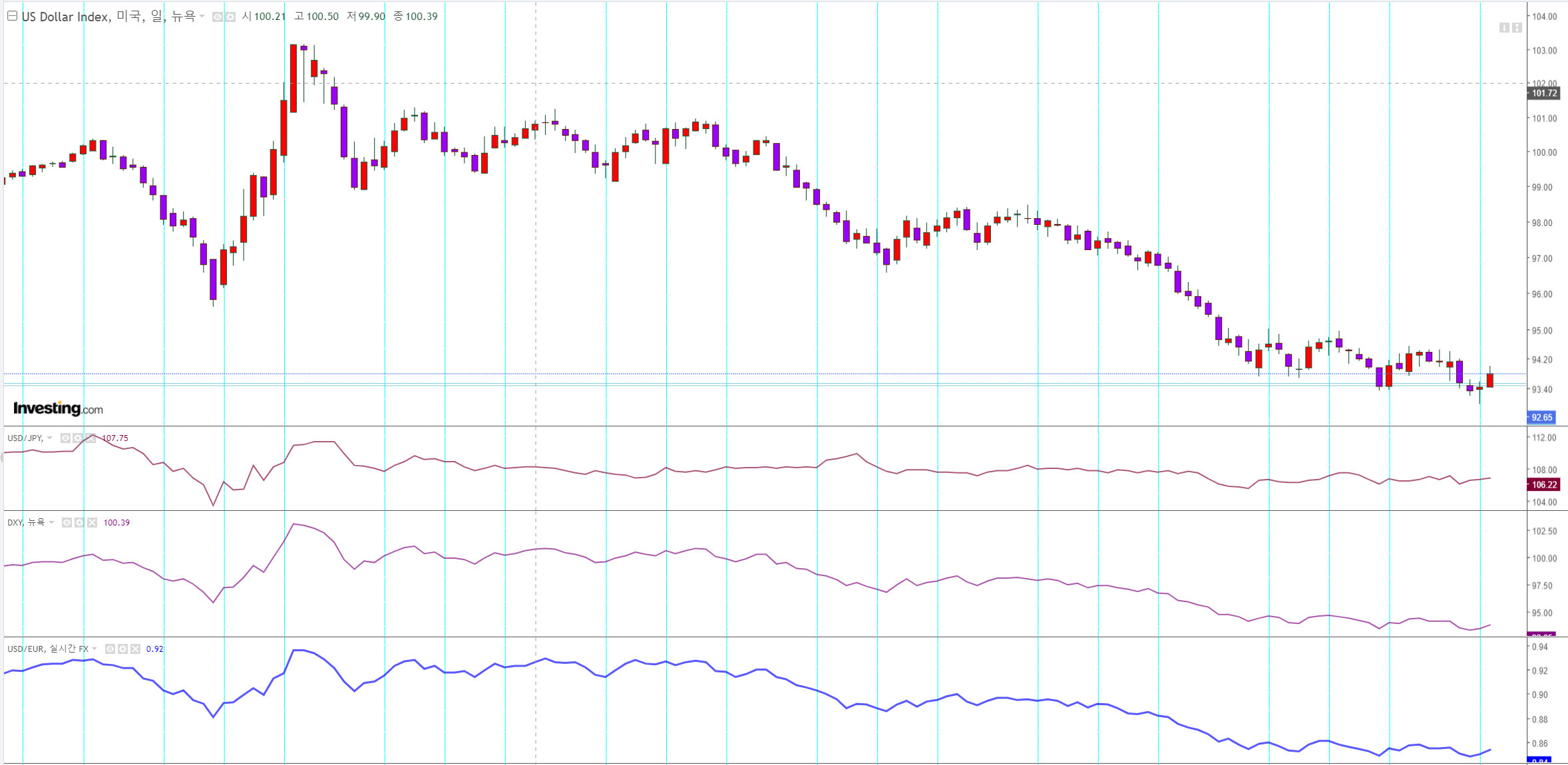 달러인덱스 - 추세가 하락.
