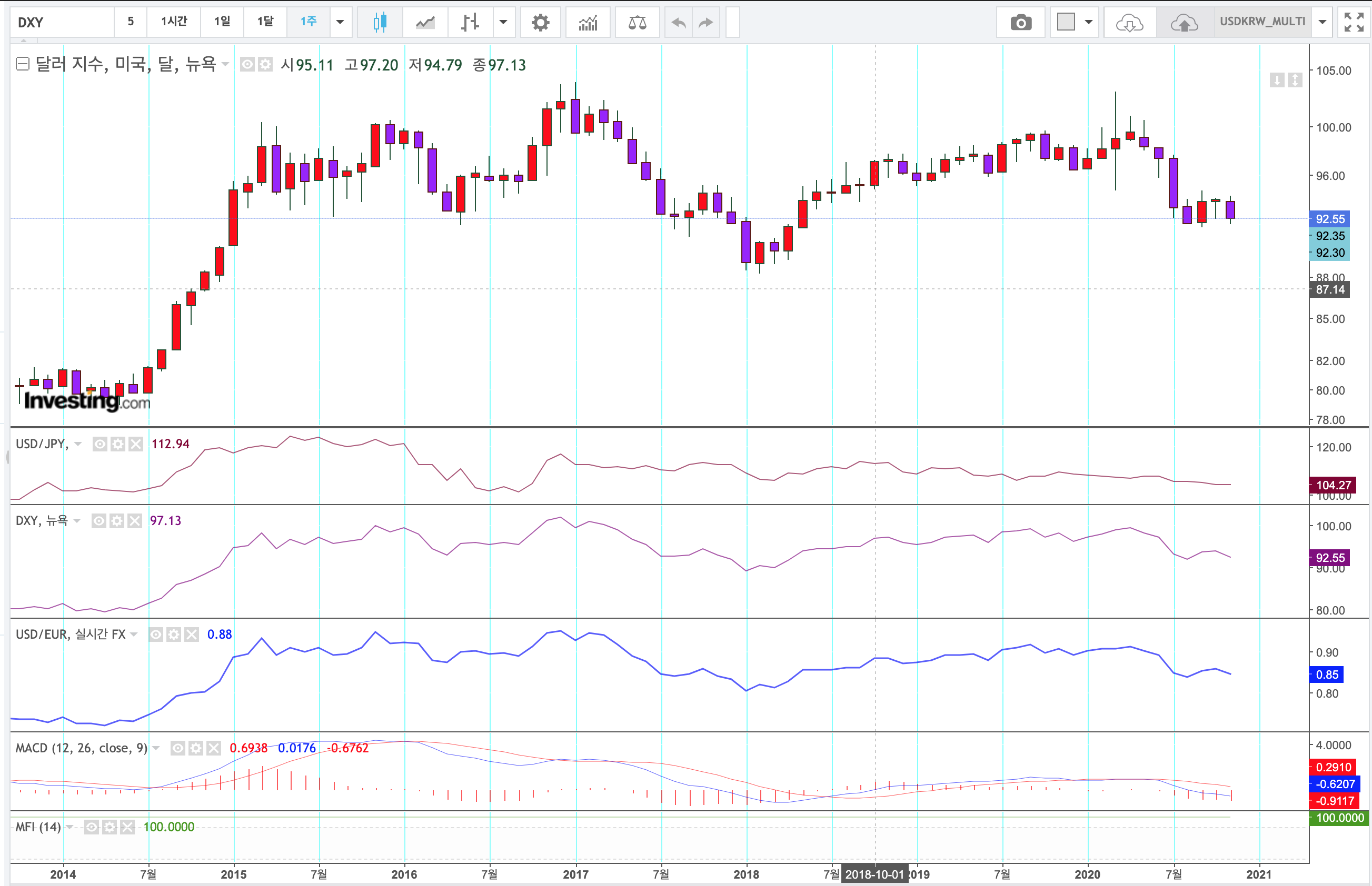 달러인덱스 - 바이든 당선분위기라 지수가 이런가.. 여튼 바이든 군기를 잡아야 하니, 조심해야 함.
