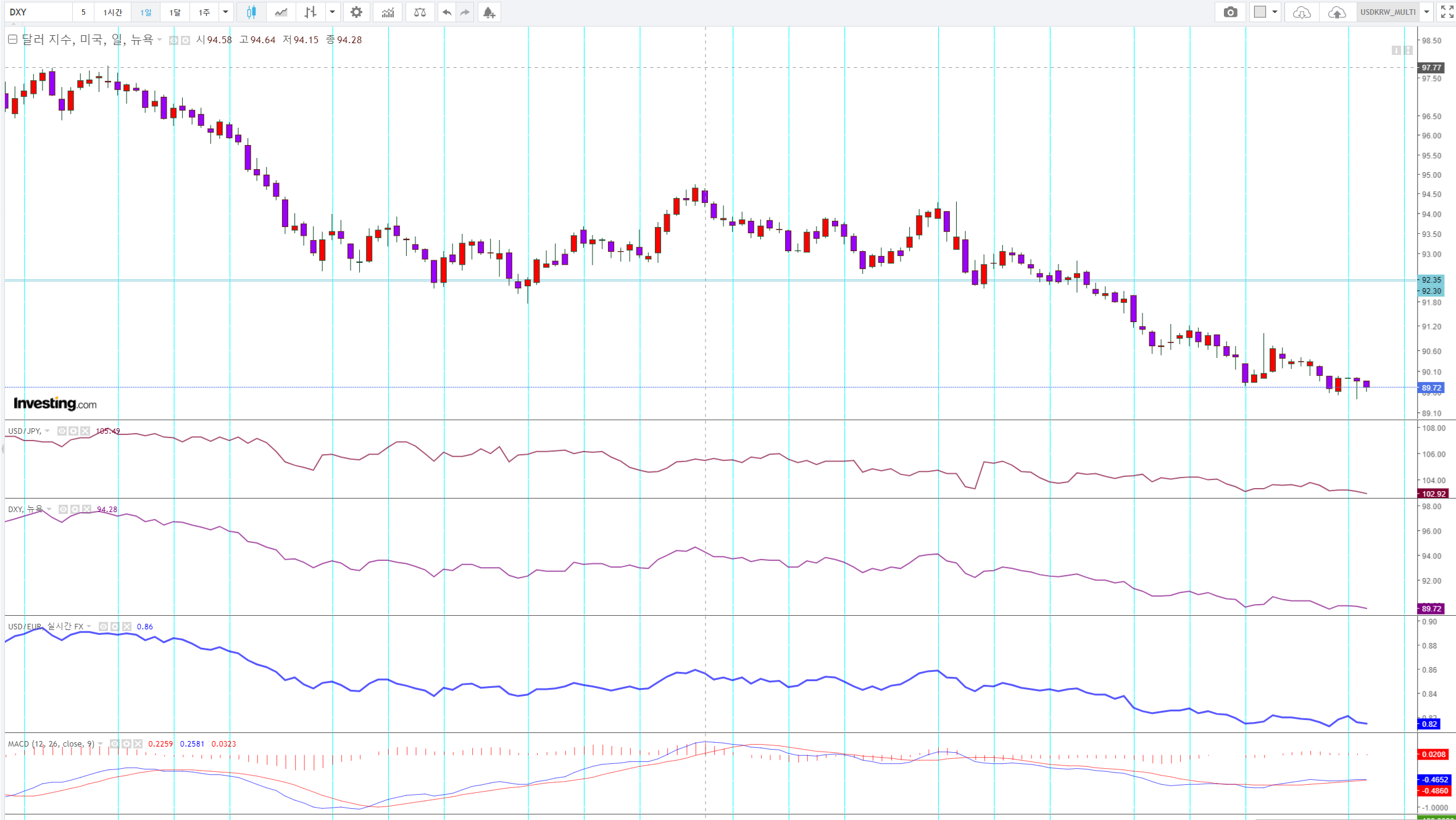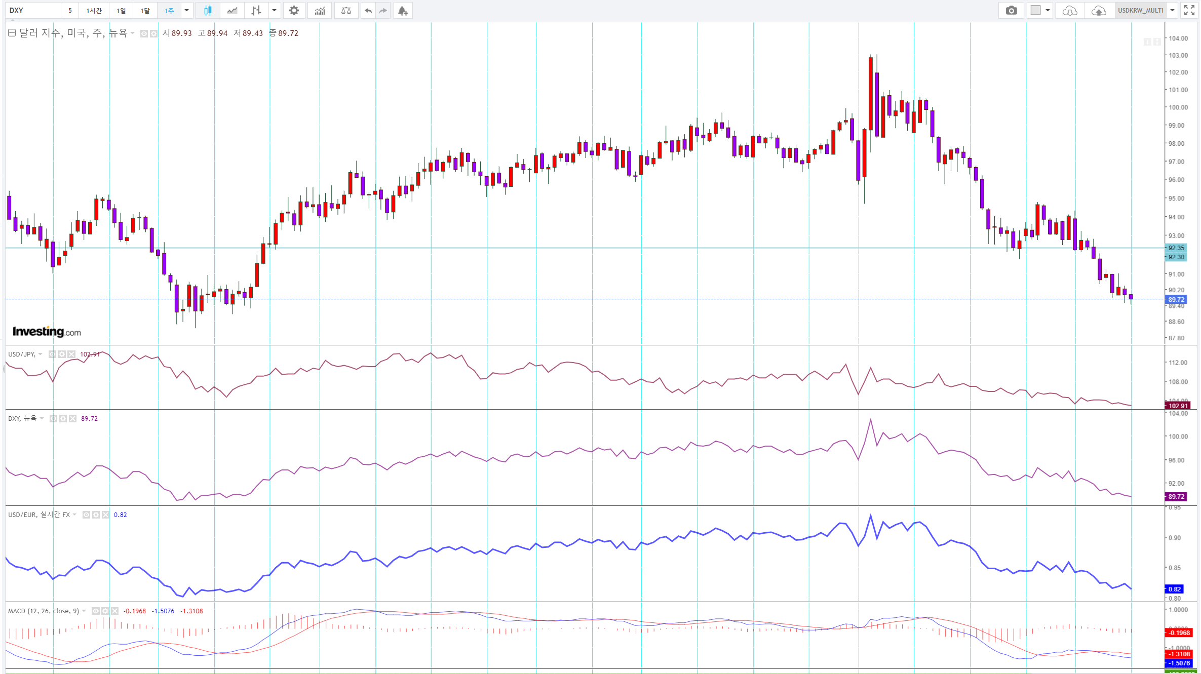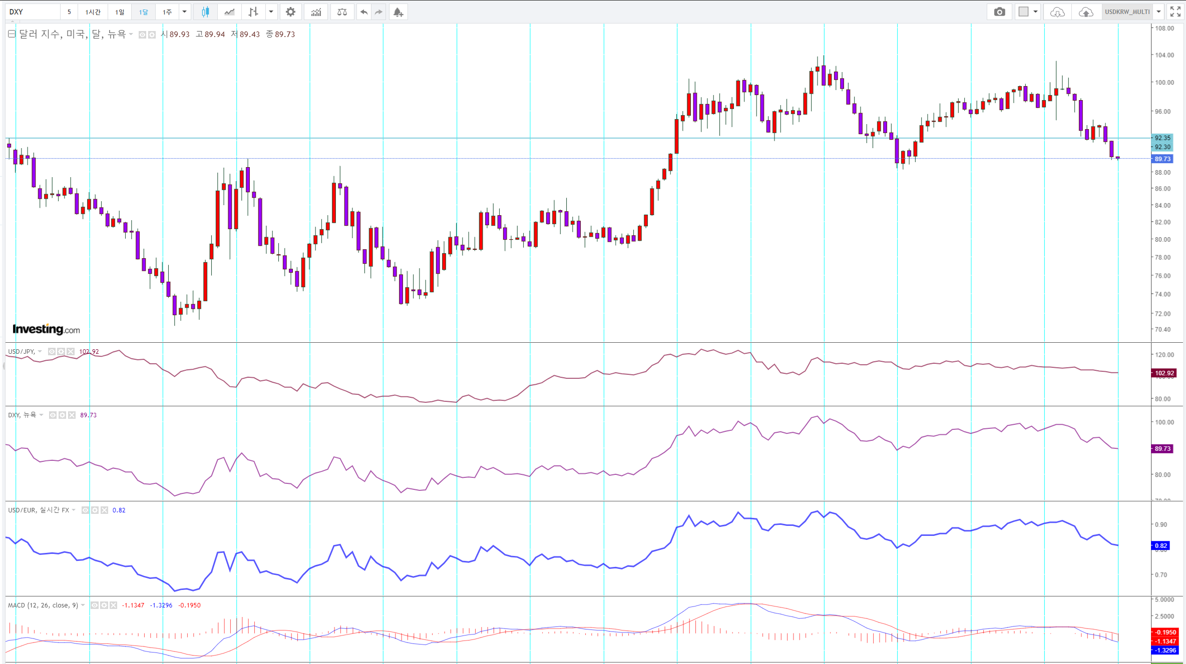 달러인덱스 - 음.. 일단 돈을 지속적으로 찍어내고 있으니 일단 달러인덱스는 하락중.