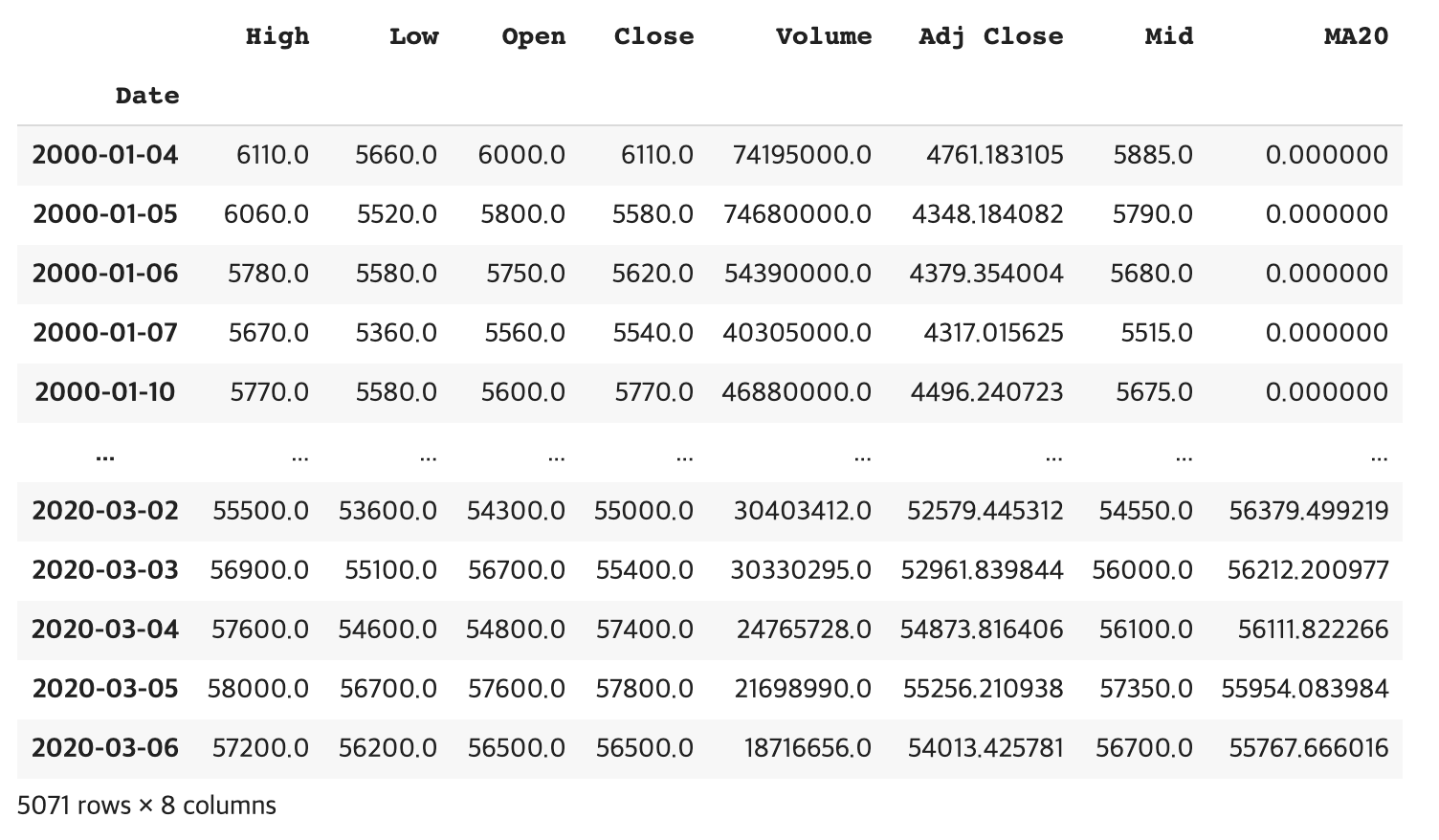 3. 이동평균의 최애 기준선인 20일선 데이터 가공.