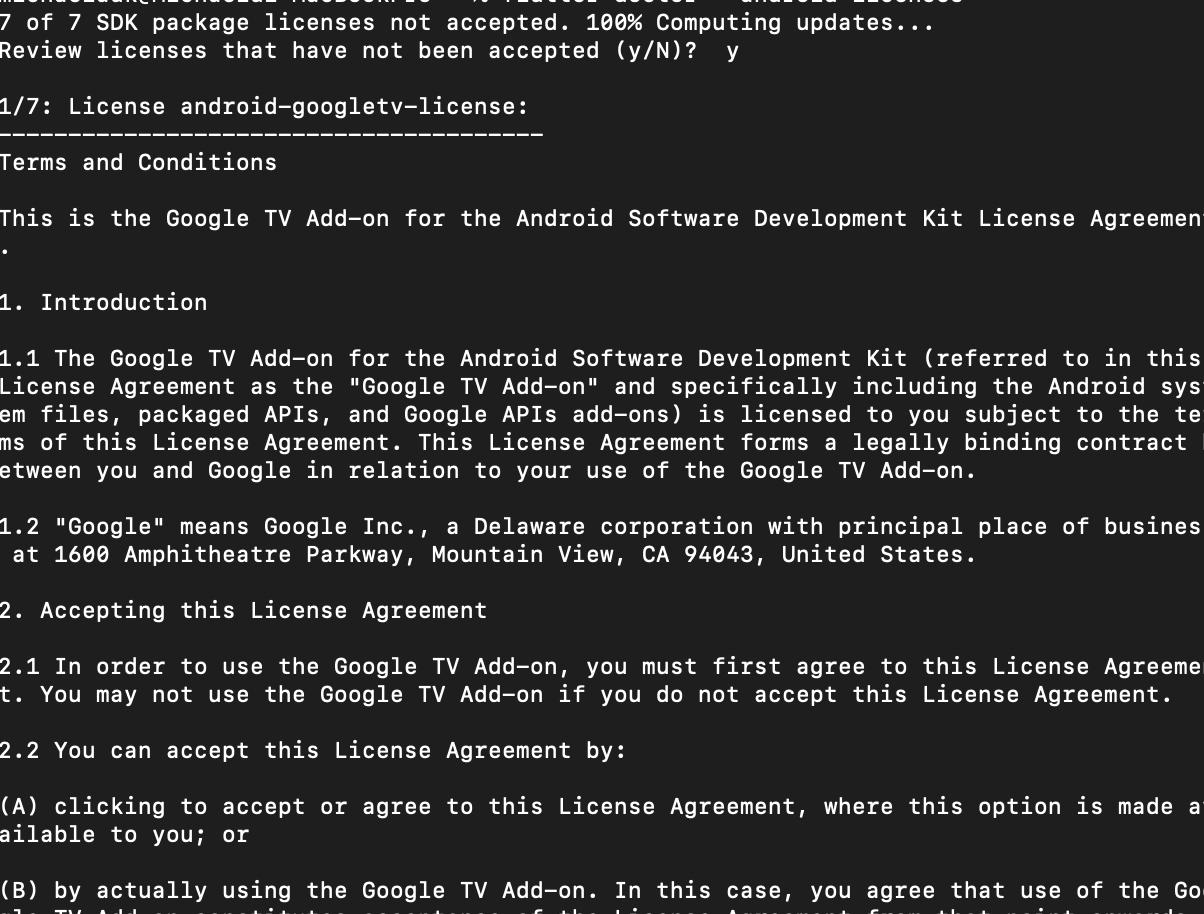 5. flutter doctor --android-licenses 실행