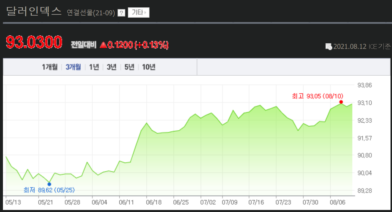 그래서 달러인덱스는 90이하로 가지않고 관리됨.(달러는 절대 안망함..)