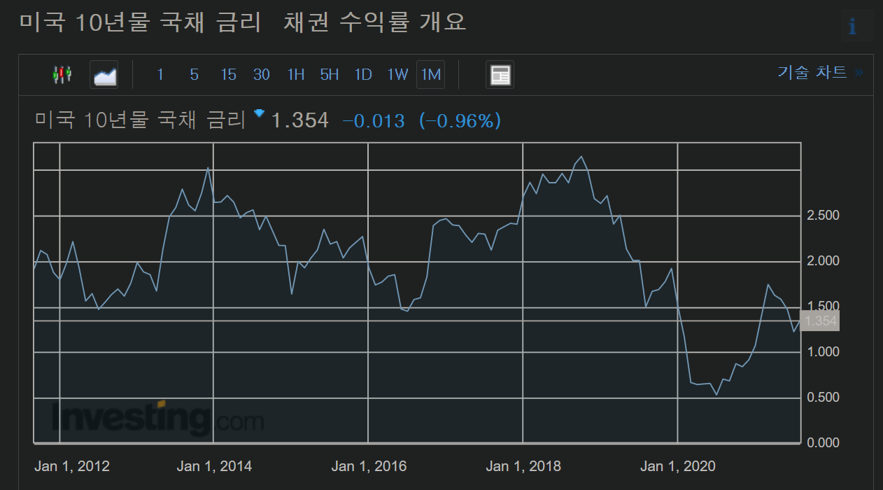 국채가격이 상승(금리,수익률은 하락)하였고,
