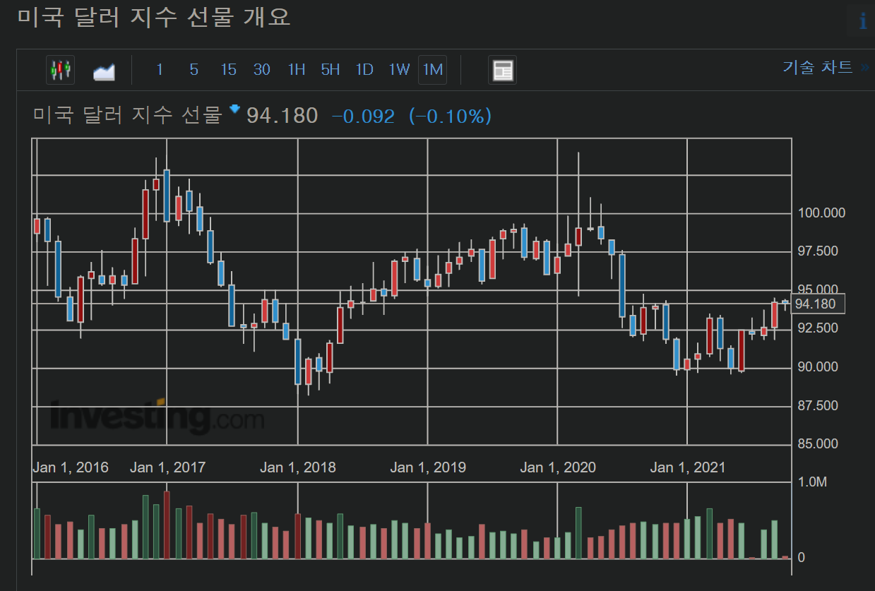 달러인덱스 95까지는 찍어주지 않을까 함.