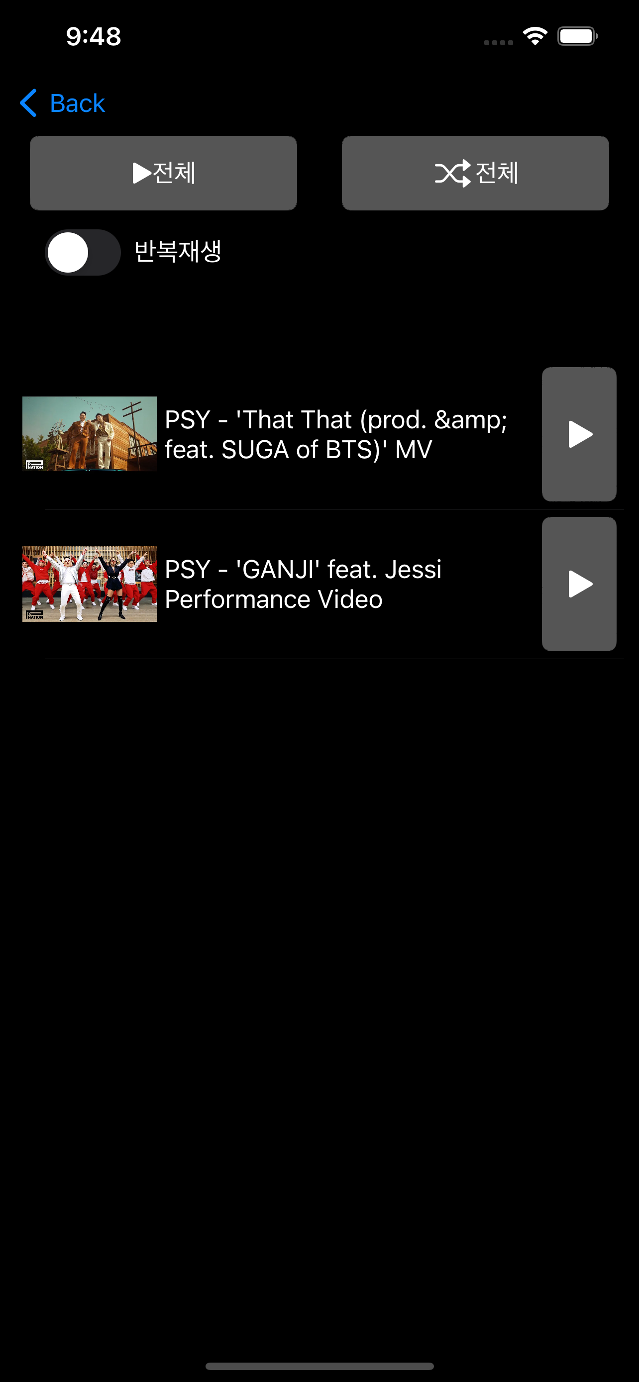 * 너튜브 목록 플레이 혹은, 목록에서 가져온 링크는 동작하지 않습니다.