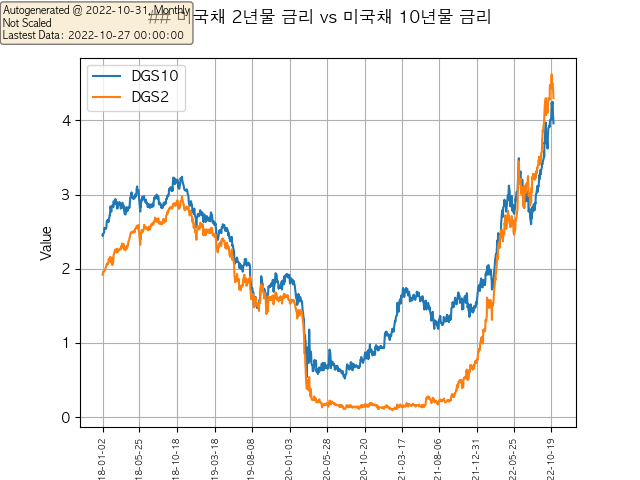 ## 미국채 2년물 금리 vs 미국채 10년물 금리