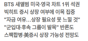 | 2019-04-04 빅히트 엔터테인먼트 상장소식 관련 기사 모음 (0) | 2019.04.04 |