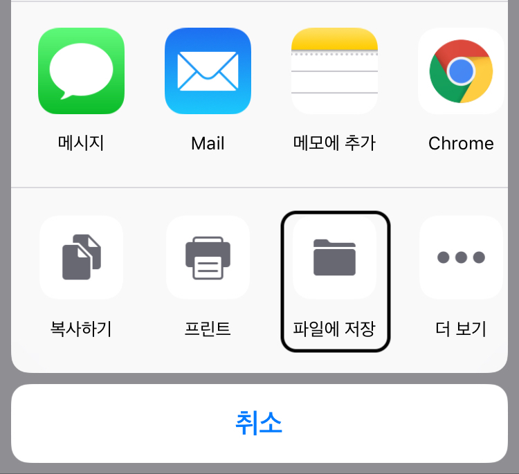 4. 첨부된 파일을 핸드폰 내 "파일에 저장"을 선택합니다.