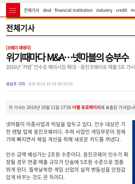 흠.. 진짜 넷마블에 흡수되던지 하는거 아닌가 모르겠슴.