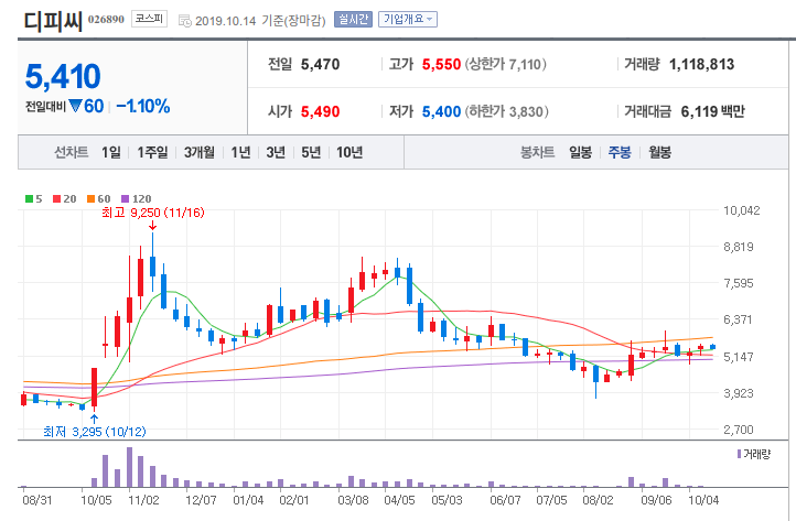 디피씨 주가