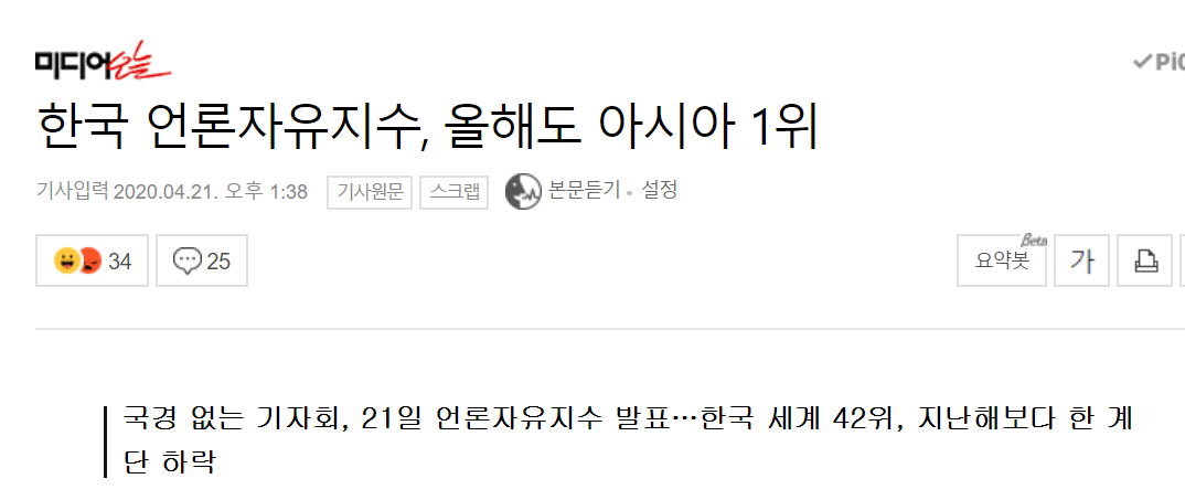 현재 우리나라는 외신보도가 별로 없는 상황.