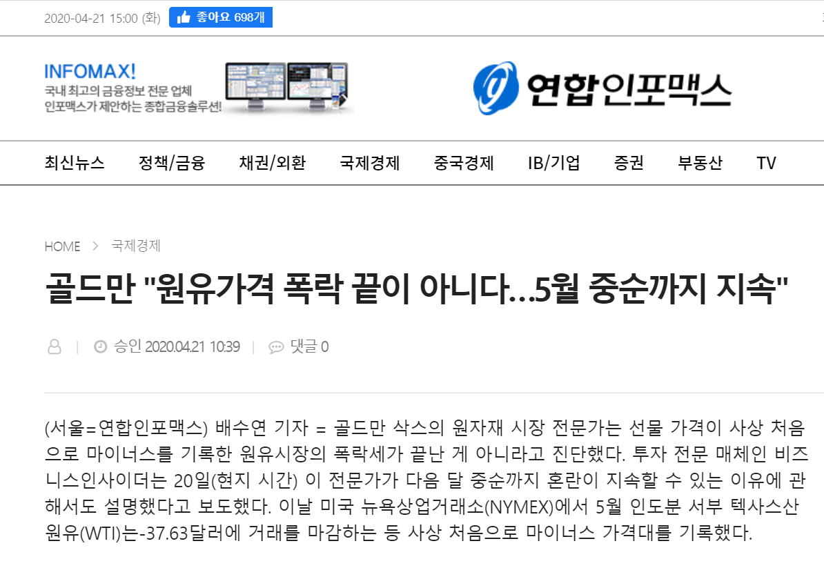 | 유가는 어디까지 갈려나... (0) | 2020.04.21 |