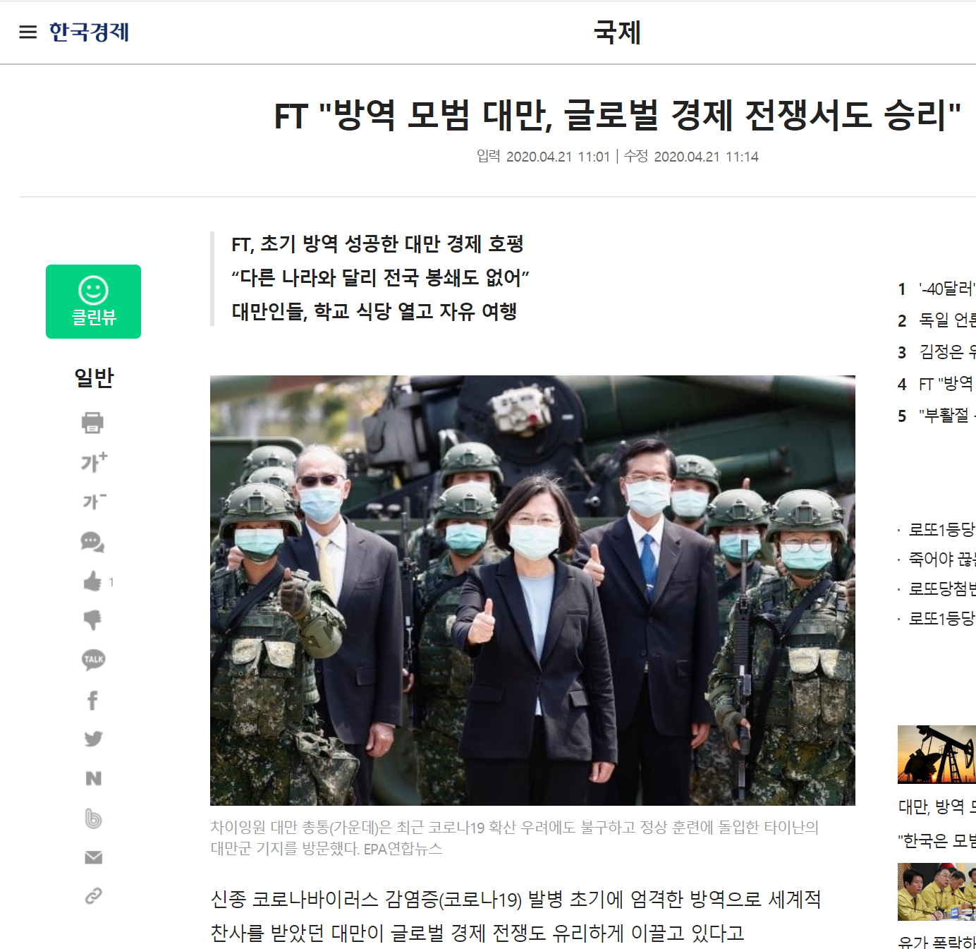 저런 국제적 명성이 왜 중요한가 하면, 코로나 사태가 다 마무리 되고나서, 다시 기업들이 활동을 시작하게 되면, 아무래도 국제적으로 신뢰가 높은 나라들의 기업이 먼저 고려되게 된다.