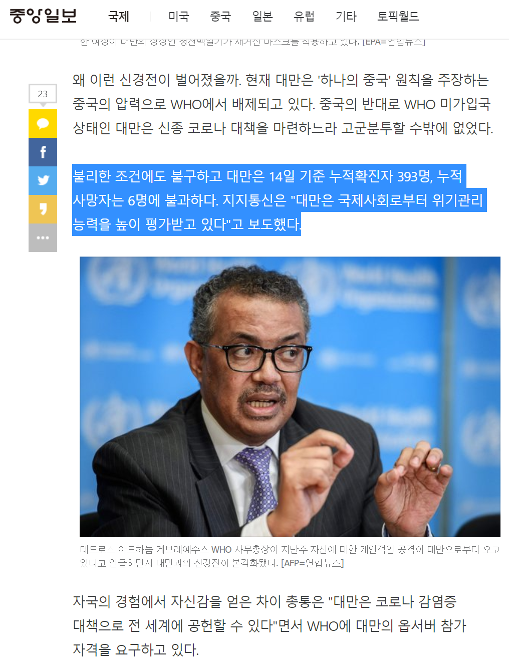코로나사태가 지금 전세계적으로 매우 민감한 사안임.