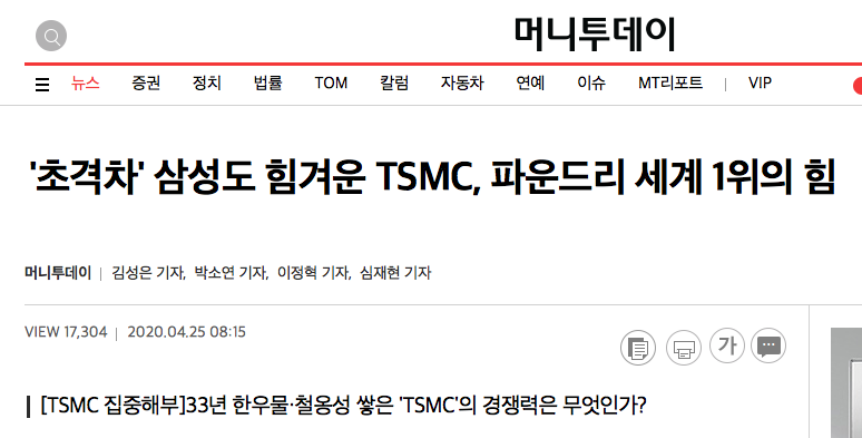 보수정권의 대만, 경제개발에 집중.... 그 결과가 TSMC 상승.
