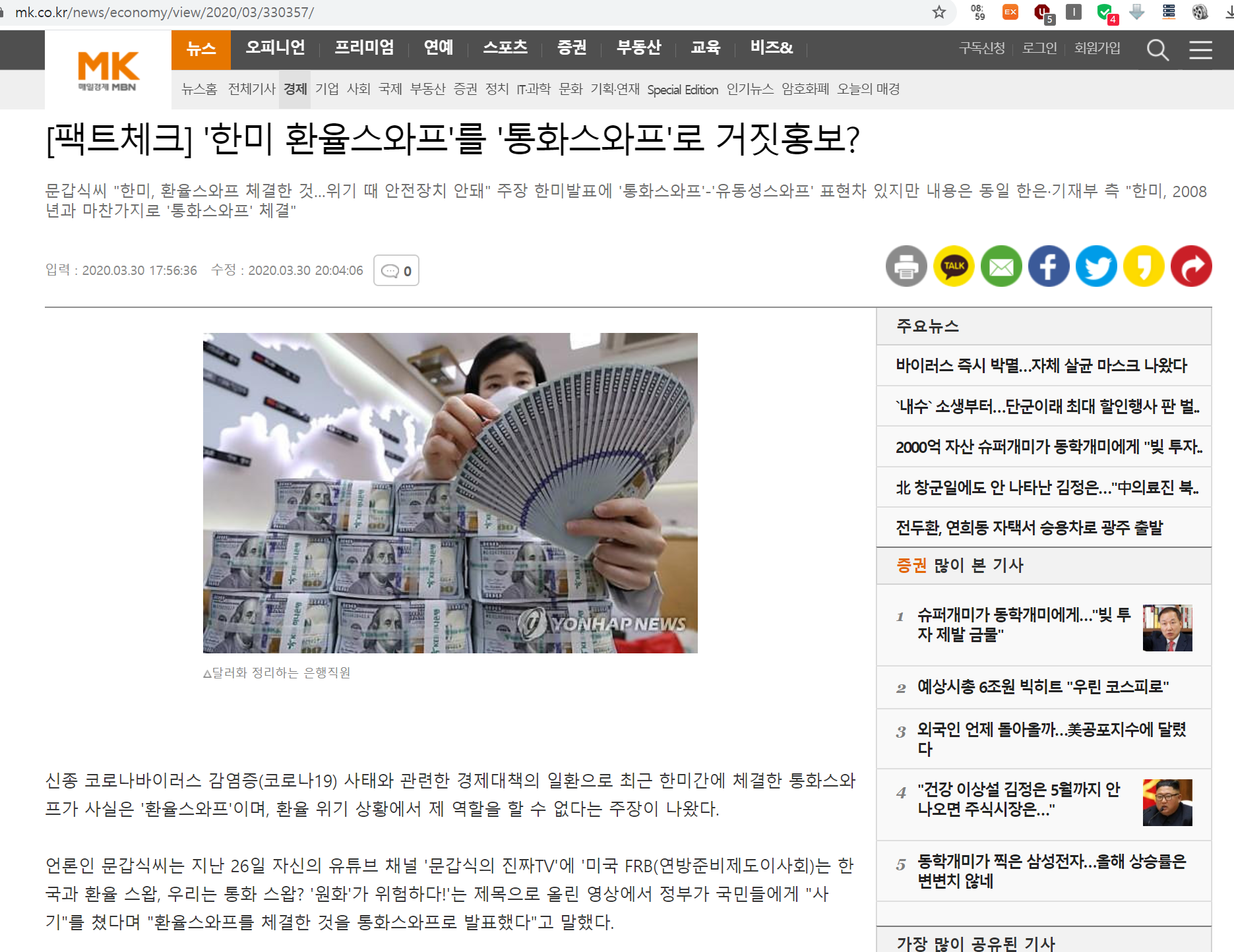 환율 - 1230원대...6개월짜리 한미통화스와프가 진짜 통화스와프가 아니었다 라는 기사를 본적이 있어 다시 스크랩 해둠.